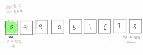 우리는 정렬할 배열의 0번째 인덱스를 기준으로 삼을 것이다.