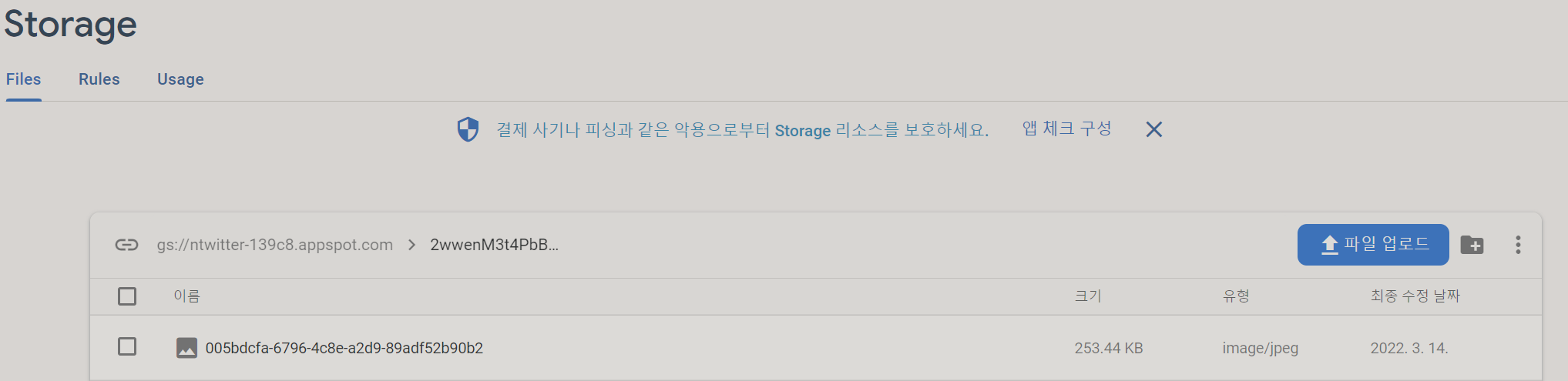 그 다음 firebase stroge에서 확인해보면