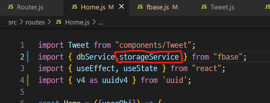firebase를 따로 관리하는 컴포넌트에 스토리지를 import한 후,